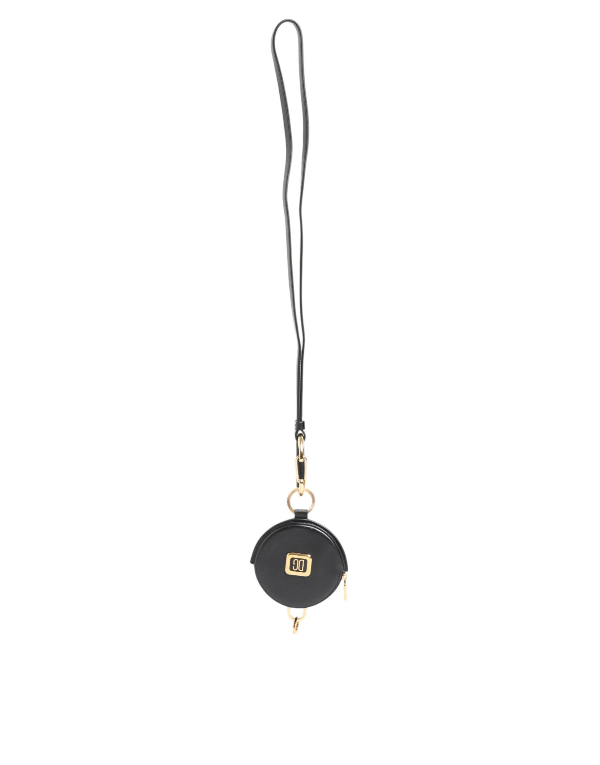 Dolce & Gabbana Black Round Leather DG Logo Coin Purse Lanyard Wallet