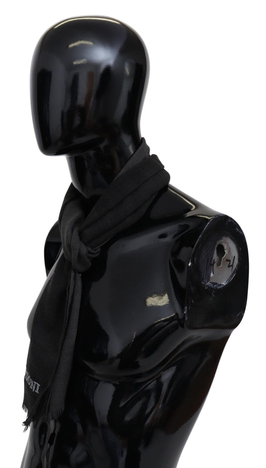 Sciarpa unisex con frange avvolgenti al collo in lana nera al 100%.