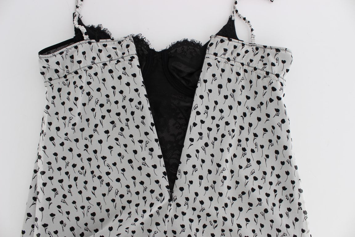 Splendido nuovissimo con etichette, babydoll chemise lingerie DOLCE & GABBANA autentico al 100% con stampa floreale in bianco e nero e pizzo di seta elasticizzato.
