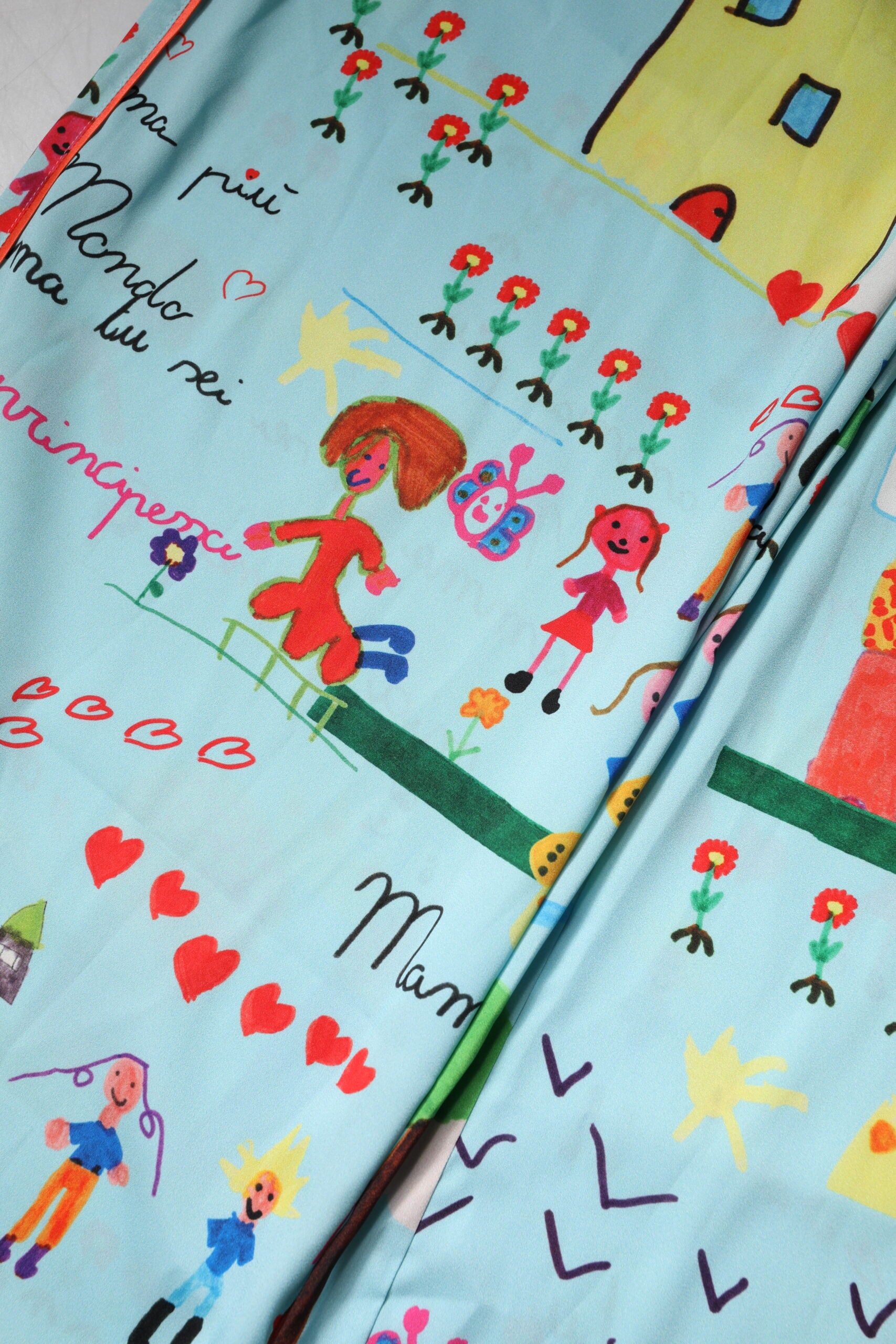 Dolce & Gabbana Light Blue Drawing Mid Waist Wide Leg Pants